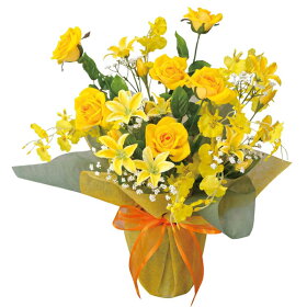 ラッピングも黄色で統一された、黄色が大好きなお母さんへおすすめの造花ギフトです。 サイズも約幅36×奥行き30×高さ45㎝と大きめサイズで、とても上品な仕上がりになっています。