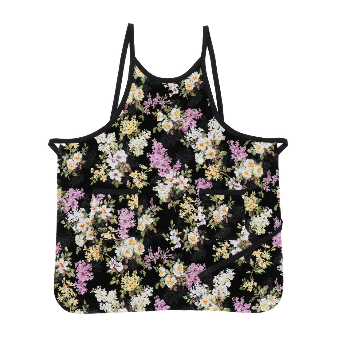 織柄とプリントの花柄が豪華なデザインのエプロンです。 有名ドレスデザイナーの桂由美がプロデュースした、気品あふれるエプロンは プレゼントにぴったりです。 ちょっぴり優雅な気分で家事が楽しめるエプロンです。