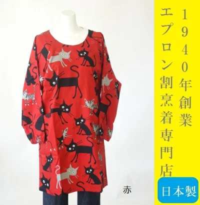 割烹着の老舗が作るかわいい大きな猫がプリントされたエプロン。 少し厚手で安定感のあるオックス生地は着ていても安定感抜群。しっかり汚れや痛みから守ってくれます。 母の日のプレゼントにピッタリですね。