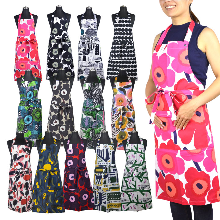 明るいデザインのエプロンが多いマリメッコから、特に印象的なデザインのアイテムをご紹介。 ケシの花をモチーフにした「ウニッコ」をはじめ、個性的な柄のものが多いです。 エプロンの形はシンプルなので使いやすいのがうれしいところ! エプロンをあまり使わない人なら、このようなシンプルな形のものをプレゼントしてはいかがでしょうか?