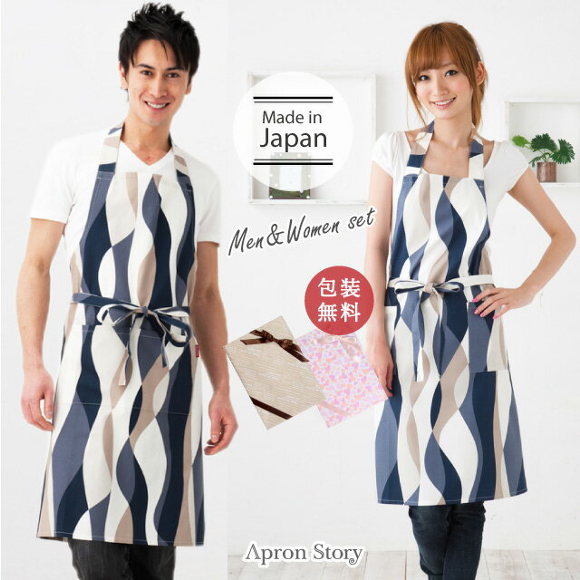 こちらは、北欧テイストなデザインのペアエプロンです。 ホルターネックタイプのためサイズ調整が簡単で、相手の方の体格を気にせず贈れるのがうれしいところ! 女性のカラーはブルーで、男性は、ブルー・カーキグリーン・ブラウンの3カラーの中から選ぶことができます!