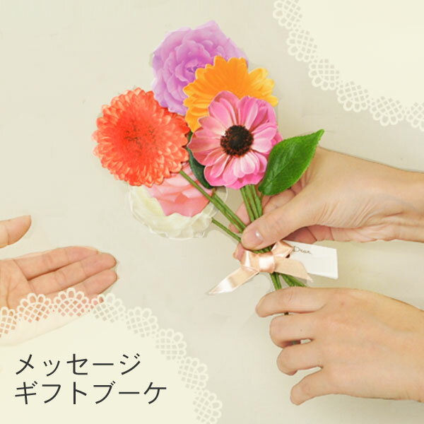 まるで花束のようなデザインのこちらは、お花の裏にメッセージが書けるようになっています。 茎と葉の部分が立体的になっているので、本物の花束のように花瓶に入れて飾ることもできちゃいます! このメッセージブーケだけで渡すのも良いですし、プレゼントをメインにメッセージブーケ添えて渡すのもオススメです!