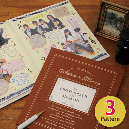 こちらは表紙に写真が入れられる色紙です! オシャレな表紙がデザインのこの色紙は、アイボリー、サーモンピンク、ブラウンの3種類から選ぶことができます! 直接色紙に書き込むこともできますし、メッセージペーパーがついているのでそれを使っても良いですね。 スタンド付きなのもうれしいところです。