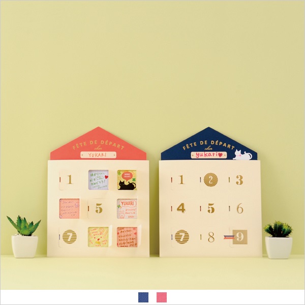 こちらは、アドベントカードのような仕掛けの色紙です。 ひとつひとつの窓を開けるとメッセージが出てくるので、窓を開けるワクワク感があります。 窓枠に合わせてメッセージシールを貼るだけなので簡単に仕上げられます。 デコレーションようのシールもついているのでアレンジしちゃいましょう!