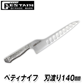 独特の形が特徴的なホンマ科学のペティナイフ。 これは、アップシェンクという形状で、切る時にまな板に手が当たらないように工夫されているんです! これ1本で皮むき、スライス、きざみ等に使えるので便利です。 もちろん刃の部分は凹凸があるので切った食材はくっつかないです!