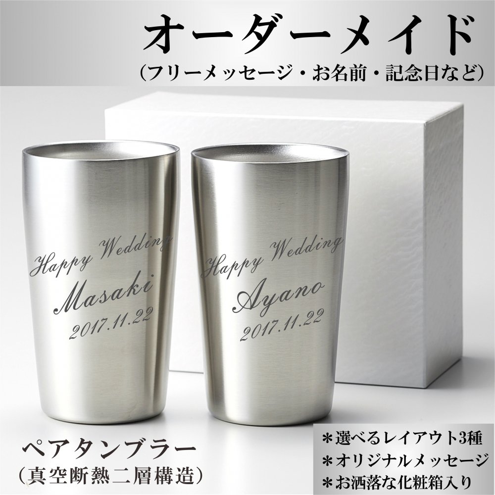 こちらは名入れができるステンレスのペアタンブラーです。 シンプルなデザインなので、上司夫婦にとっても使いやすいのではないでしょうか? 英文字、漢字とそれぞれ4種類のフォントから選ぶことができますよ! 真空2層構造なので、冷たい飲み物は冷たいまま、熱い飲み物は長く飲みごろをキープしてくれます。
