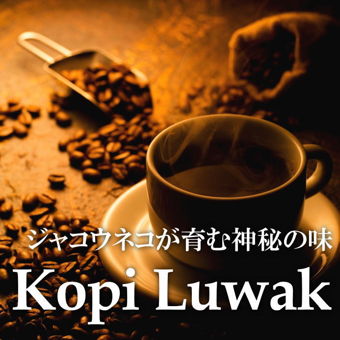 アラビカ種のみで作られているコーヒー豆です。 『ジャコウネコ』が、コーヒー豆を食べるのですが、豆は消化できずに排出されます。 それによって発酵が促され、独特の香りと味わいがあらわれます。 非常に少量しか採れないため、高価な価格で取り引きされます。 ぜひ神秘の味をためしてもらいましょう!