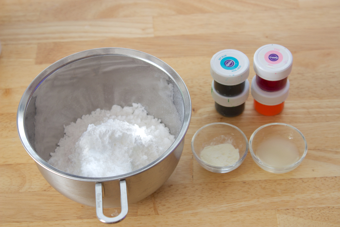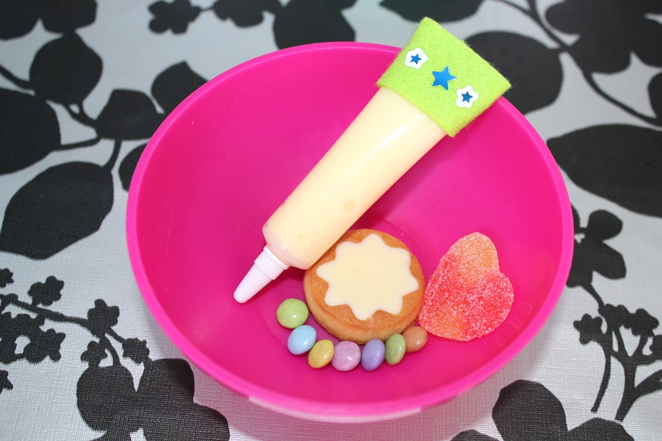 デザインが決まったら、お次は…… ②材料を集めます。 クッキー、卵白、粉砂糖。 そして、お好みのアイシングカラー♪ クッキーは、市販のものでO.K. 飾りの少ないシンプルなものを選びましょう。 粉砂糖は、コーンスターチの入ったアイシングクッキー専用のものを使うと、より滑らかに仕上げることができるでしょう。 あ、そうそう、オーブンシートやOPPシートなどを使って、コルネも作っておきましょう。 アイシングを搾り出すためのものです。