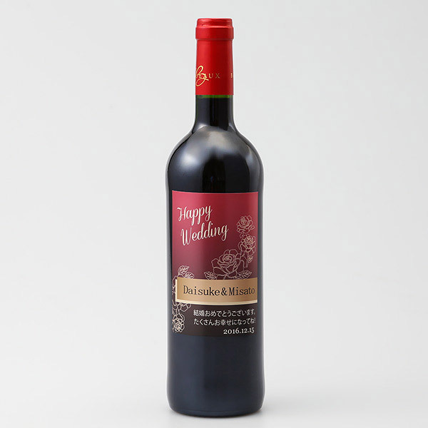 フランスのボルドー産の赤ワインですが、メルロー種を増やしてまろやかに仕上げています。 ボルドーの力強さとメルローの繊細さがマッチして、どんな料理にも合うワインです。 ラベルにはメッセージ等を入れることができますので、お二人の名前と一緒に、励ましの言葉も書いてあげましょう!