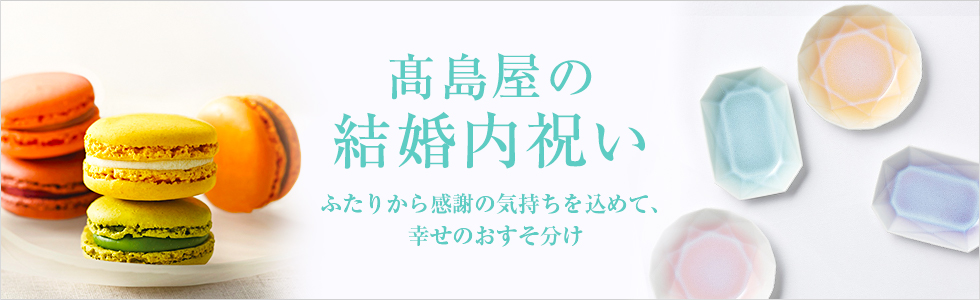 高島屋は老舗のショッピングセンターですが、『高島屋』自体が一つの大きなオシャレブランドとなりました。 高島屋の包装紙に包まれた商品は、高島屋ブランドとして、受け取った方に安心感と喜びをもたらしてくれます。 その高島屋が選んだお返しギフトは、内祝いの最高には最高の商品です。 相手の方に合わせられるように、スイーツや雑貨、喜ばれる消耗品まで、幅広い商品を揃えています。 また、大人気のカタログギフトにつきましては、別の項で詳しくご案内しますので、あとでゆっくりご覧ください! ぜひ結婚祝いのお返しには、人気おしゃれブランドの高島屋ギフトを贈りましょう!