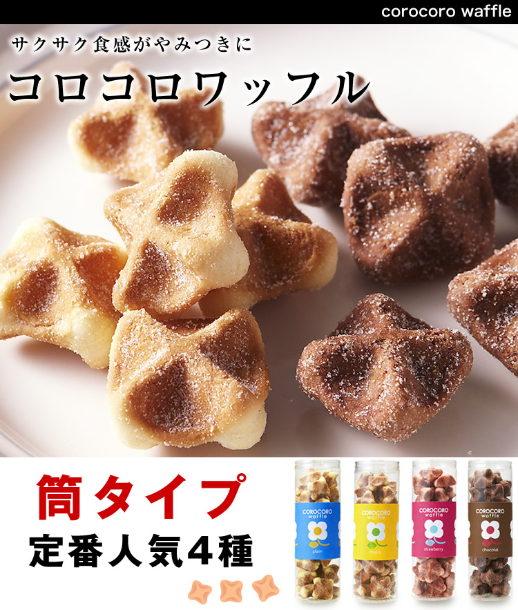 プチギフトにふさわしいお手軽なお菓子は、子供も大人もみんなが食べられる人気のお返しです。 ワッフルという商品名ですが、サクサクとした食感のプチクッキーです。 一口で食べられる大きさで味の種類もいろいろとそろっています。