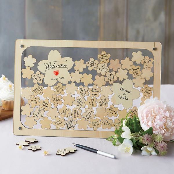 デザインを考える場合ですが、全体の雰囲気を先に考えても良いでしょうし、下地になるものから考えるのもよいでしょう。 また、予算を決めてからベースになるものを決める事も肝心です。 何を一番重要視するかを判断しましょう。 ボードに書くのは一般的ですが、イスやブロック、食品を使ったものもあります。 ボードであれば、ただ書き込んで飾りつけをするのか、写真や英字新聞で全く違う世界観を見せる事もできます。 また、披露宴の参加者に協力を仰ぐ場合には、デザインも絞られてくるでしょう。 1つのコンセプトがきまれば、おのずと進んでいきますので、決められる事から決めていき、細かいことは後で決めるなり、途中で考えても遅くはありません。 但し、披露宴の日程は変更できませんんで、それには必ず間に合わせるようにしましょう!