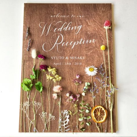 ドライフラワーは、ウェルカムボードにも良く使われるアイテムです! ドライフラワーの使い方で華やかの程度を調整できます。 ナチュラルテイストが出るので、下地にもナチュラルなウッドなどを使用するとマッチします。 今回は、わざと1本ずつに独立した雰囲気を持たせたので、ドライフラワーの量は多くありませんが、束ねたり花を数本からめたりすると、また違うボリューム感のあるものも作る事ができます。 下地のウッドは文字も入れて市販されていますが、全くのサラでもニスを塗ったり、アルファベットのゴム印を100均で購入して文字を入れる事もできます。 ナチュラルデザインなら、ドライフラワーは欠かせませんね!
