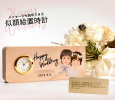 似顔絵ポエムと、プリザーブドフラワーのデザインされた時計と、両方楽しんでいただける、こちらの時計は、20〜30代の方へ結婚祝いにおすすめです。 似顔絵のタッチは、3種類からお選びいただけます。 写真などがそろってから、約1週間で納品です。 税込価格23,086円です。