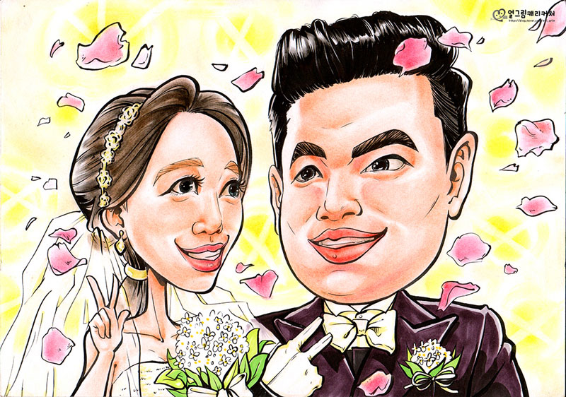 20代から30代のカップルに人気の色紙サイズの似顔絵をご紹介します。 色紙サイズなので、結婚式のウェルカムボードにもぴったりです! 結婚祝いのプレゼントに大人気です。 結婚式やその後には新居に飾っていただけます。
