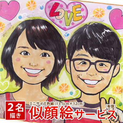 ポップでかわいい画風の似顔絵ギフト。 縦12×横13.5センチのミニ色紙サイズで、どこにでも飾りやすい大きさです。 もちろん結婚式のウェルカムアイテムにも! 写真データを送ってから15日以降に納品になります。