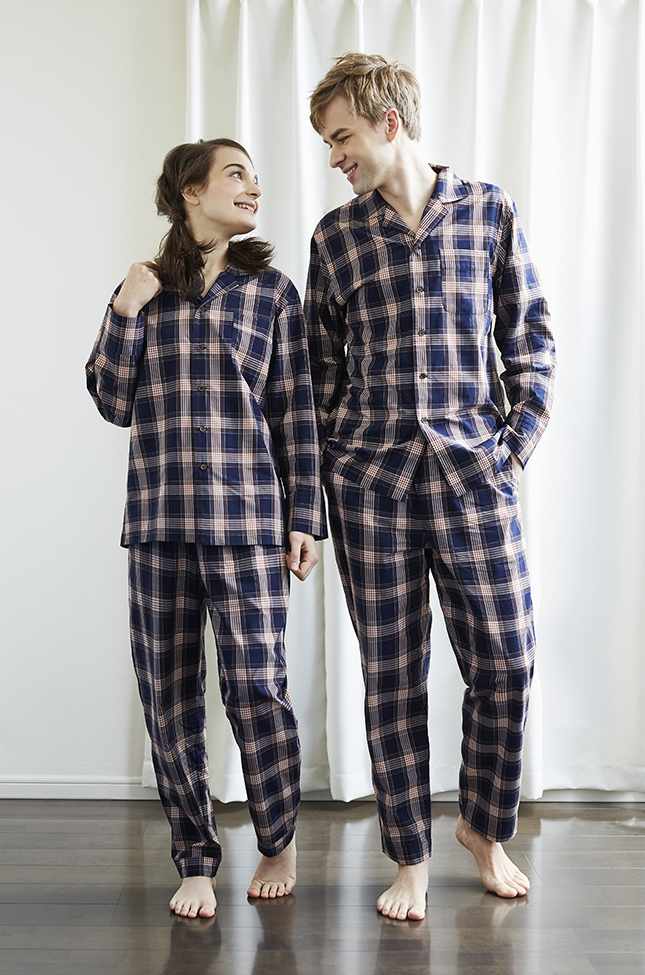 人気のチェック柄ナイトウェアシリーズ。生地を改良し、ポリウレタンが織り込まれています。洗濯後のシワや、生地の肌へのはりつきを軽減☆ボトムにはウエスト紐が入っていて、調節可能。 丸襟でやわらかい印象を受けます。色合いもほどよく優しいイメージ。 メンズ・キッズアイテムあり。 結婚祝いのプレゼントにおすすめです!
