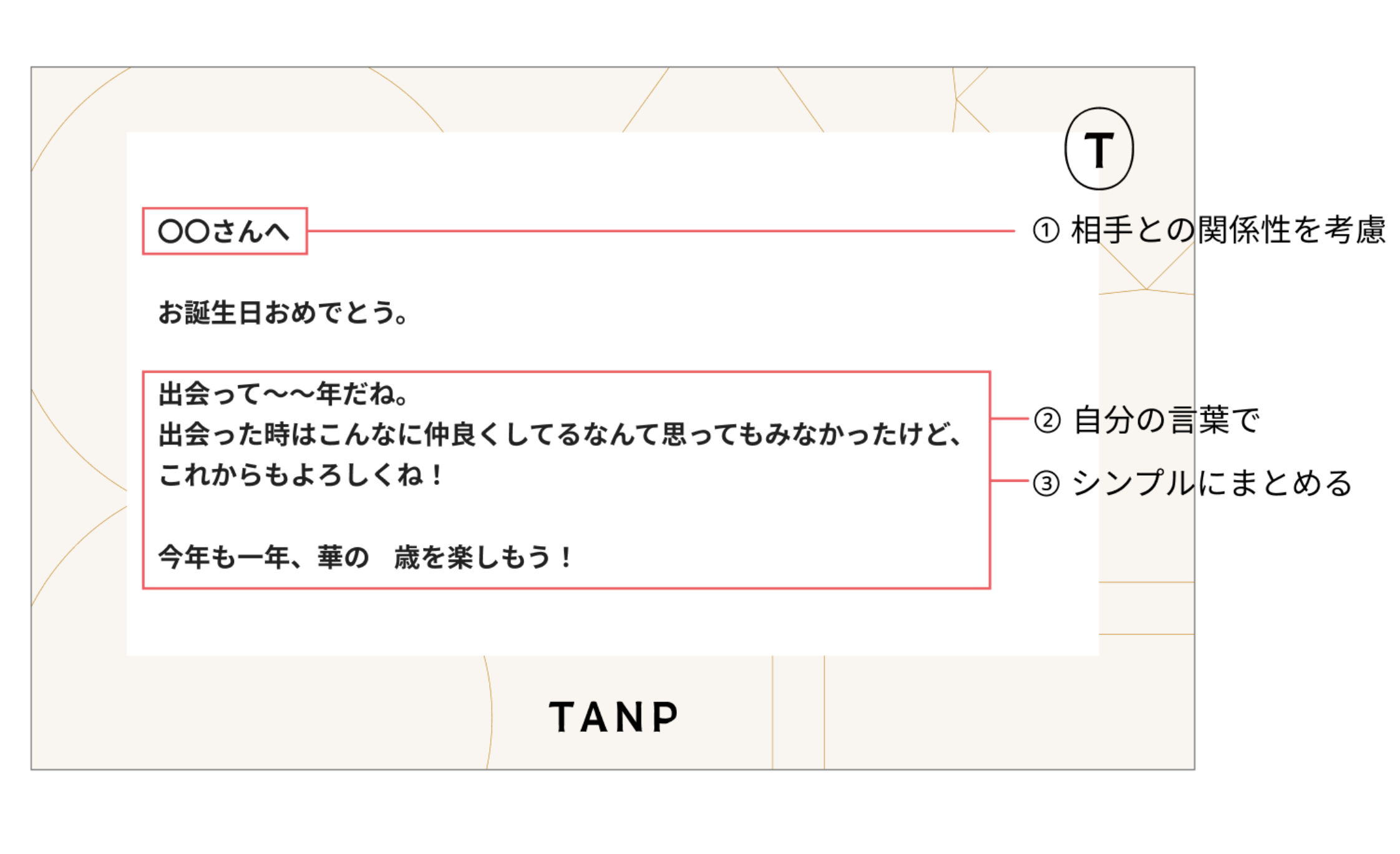 メッセージを書く際、ぜひ以下の3つのポイントを意識して書いてみてください。 きっとお相手の心に響くメッセージになります。 どれもすぐに取り入れられるものばかりなので確認していきましょう。