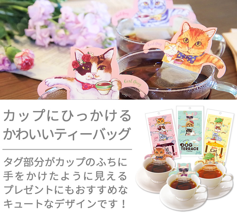 カップにかけられるめずらしい猫型ティーバッグは、プレゼントならではの贅沢な楽しさ。 ネコ好きさんには嬉しい紅茶のセットは、かなりのインパクト! 楽しい時間を共に過ごせるネコの種類が全部違うのも嬉しい。