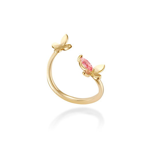 AHKAH のパサージュド パピヨン リングです。 女性らしく、繊細で華奢なデザインが有名なアーカー。 ピンクトルマリンをあしらったバタフライをモチーフにしたこの指輪は、つけているだけでテンションが上がりそうな可愛らしさですよね!