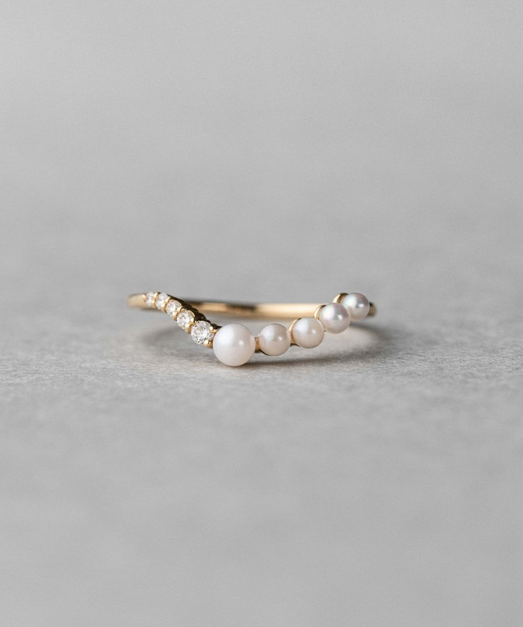 eteのK10PG パール リングです。 自然体でさりげなくつけられ、シンプルな中にも個性が光る、eteの指輪。 "Scale(英:ウロコ)" のイメージで作られた、有機的なフォルムのコレクションです。 パールは女性の素肌を最も美しく見せるといわれる素材でもあります。 大切な方に贈るに最適なリングです。