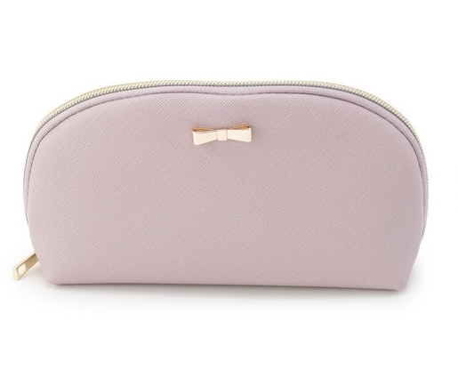 柄が入っていないシンプルなデザインのポーチですが、リボンのアクセントが引き立ってとても可愛いデザインです。 ラウンジファスナーで横まで開くので使い勝手も抜群! シンプルデザインが好きな人への誕生日プレゼントにオススメです。