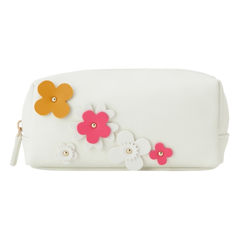 フラワーモチーフが可愛く、色合いも女の子らしいキュートなスクエアポーチです。 普段の恰好や持ち物が可愛い女性への誕生日プレゼントにオススメ。 しっかりファスナーがサイドまで開くので使いやすさも抜群ですよ!