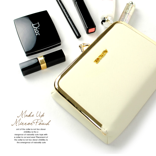 小さい小物や化粧品が多い人でも安心! 大きく開くがま口なら中身が一目で分かるから取り出しやすさが抜群です。 フタを立てて使えばスタンドミラーとして活用できるのもポイント。