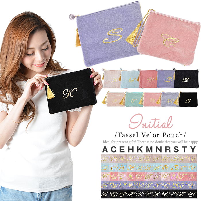 カラーバリエーションが豊富で単色のシンプルなデザインながれにオシャレなポーチです。 ちょっとした小物を入れて持ち歩くのに便利なサイズが使いやすい! 誕生日プレゼント相手のイニシャルに合ったポーチを贈ってあげてくださいね。
