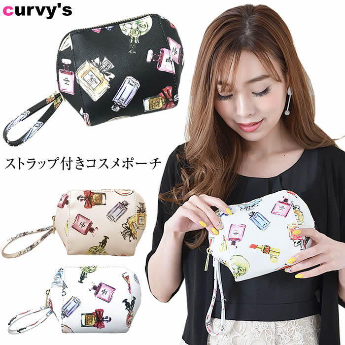丸みを帯びたデザインなのでコンパクトながらに色んなものが入れられる便利ポーチ! 特に化粧直し用のコスメを入れておくのにジャストサイズですよ。 ストラップが長めなのでカバンから取り出しやすいのも嬉しいですね!