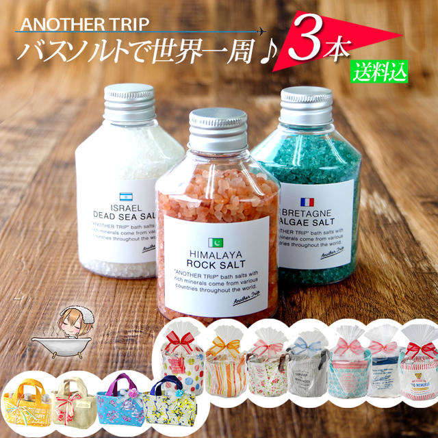 「もう一つの旅」をコンセプトに、色々な国から集められたナチュラルなバスソルトです。 家にいながら、世界中を旅している気分になれるのが魅力的♪ バスソルトには様々なミネラルが豊富に含まれているので、肌の保湿効果が期待できたり、さらに代謝アップも期待できる、機能もすぐれた消耗品なんですよ~!