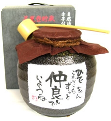 一部の高級焼酎では行われている甕発酵をご自宅で楽しんでもらいませんか? 飲みたい焼酎を入れて2,3日放置するだけで、普通の焼酎がまろやかで座祝深いものに変わります! 追加料金を払えば、付属のカップにも名前を入れることができます!