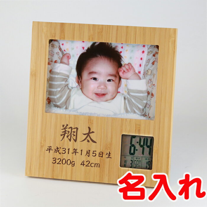 珍しい竹の素材でできた、クロック付きのフォトフレームです。 名前はもちろん、好きな文字が入れられて、カレンダー・時計がついています。 飾る写真は簡単に交換できるので、お気に入りの写真を入れ替えて使ってもいいですよね♡