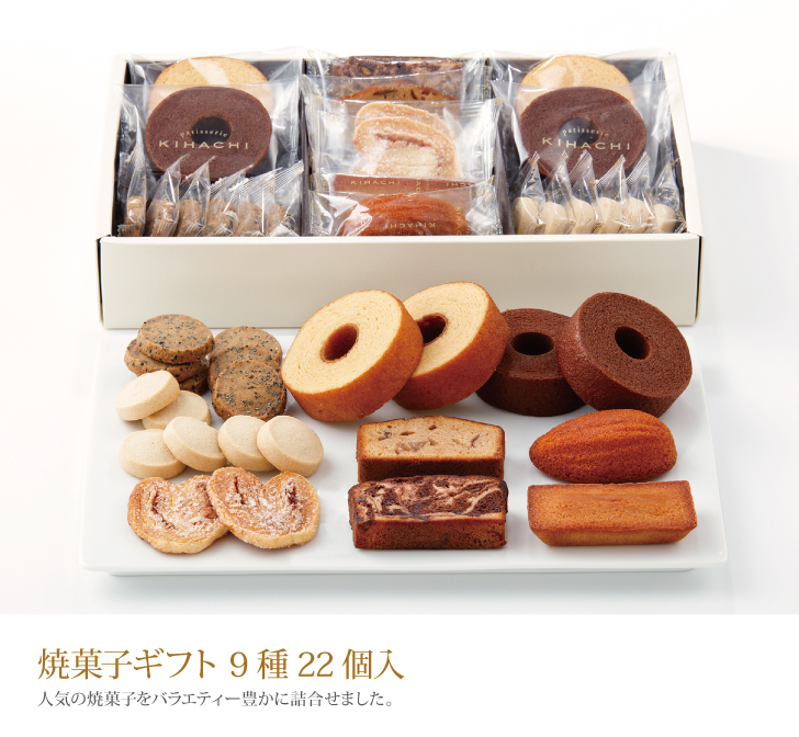 高級レストランとして有名なキハチが手がける、焼菓子ギフトセット。 上品で高級感があり、内祝いに喜ばれています。 焼菓子の種類や、数も多く、大人数の家族への内祝いにおすすめです。