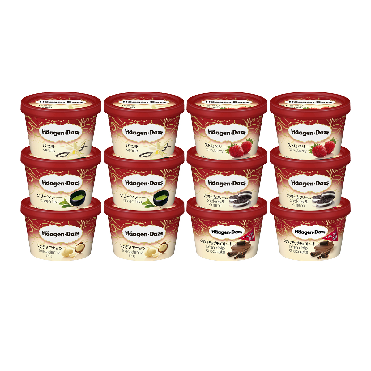 こちらも知名度・人気とも抜群の、世界各国で愛されているアイスクリームメーカー「ハーゲンダッツ」の6種12個入りのアイスギフトです。 ハーゲンダッツ定番人気のフレーバー6種がミニカップに入った12個セットなので、子供やご高齢の方も食べやすいサイズです。