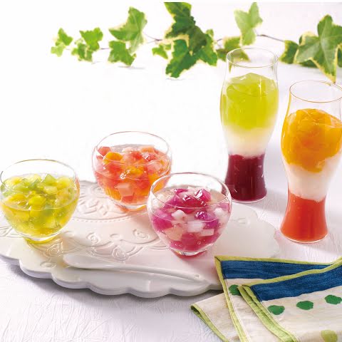 フルーツゼリーとフルーツソース、そして葛切りが一つになったさわやかなジュレです。 爽やかな見た目は夏のギフトにぴったりです。 それぞれヒアルロン酸やコラーゲンペプチドが配合されているので、女性にうれしい内祝いになります。