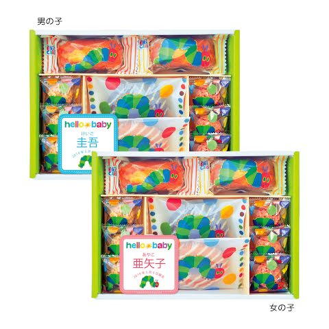 世界中でミニオンセラーになっているはらぺこあおむしのカラフルな色合いを焼き菓子にしたセットです。 クランチクッキーやパウンドケーキ、ドーナッツなど定番のお菓子が詰め合わせになっていて、見るだけでもとっても食べたくなりますね! お子さんのいる家庭への内祝いにおすすめの商品です。