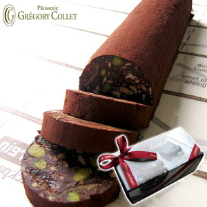 こちらの真っ黒なチョコレートケーキは、シェフの遊び心で生まれた商品です。 フランスの黒いソーセージを模して作られていて、中にはピスタチオやナッツなどが まるでソーセージ模様のように配されています。 ビターチョコとナッツの相性は抜群で、甘いものが苦手な人でもおいしくいただける商品です。