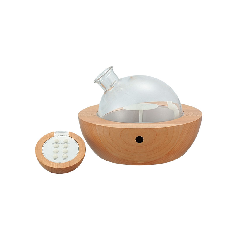 木目調が優しい色合いでどんなお部屋にもマッチするアロマミストディフューザーです。 ガラスのドーム内にミストが発生する様子が鑑賞でき、見た目の癒し効果も抜群! スピーカー機能もあり音楽機器との接続も可能で、好きな音楽を聞きながらアロマを楽しめます。 もちろん、内臓されている音楽もあり即日からご使用いただけます。