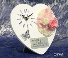 こちらはコンパクトながら白地の文字盤と華やかなプリザーブドフラワーでお部屋を明るくしてくれる置き時計です。 3行程度のメッセージをプレートに刻むこともできます。 いつまでもみずみずしいお花が色あせない素敵な新築祝いになりおすすめです!