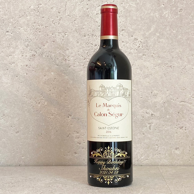 【名入れ】ハートのラベルの赤ワイン|カロンセギュール名入れ彫刻