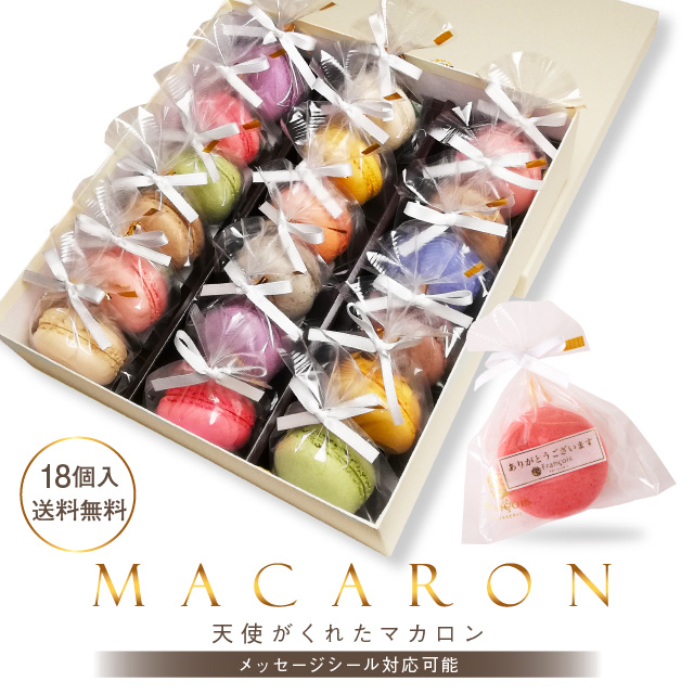 とっても可愛い、リボン付きのマカロンです。 厳選した新鮮な材料を使って、シェフが丁寧に手作りをしている、このマカロン。 見た目だけではなく味も抜群なんですよ♡ カラフルな見た目が、お祝いにピッタリですよね!