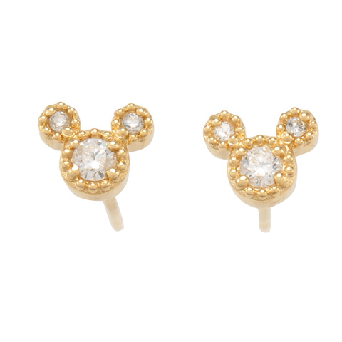 アニバーサリージュエリーより、かわいらしいミッキーモチーフのピアスです。 大きさの異なるダイヤを使用し、小さなミッキーが型どられています。 小さいながらも、さりげなく高級感溢れるピアスです。 ミッキー好きな女性への、クリスマスプレゼントにぴったりです!