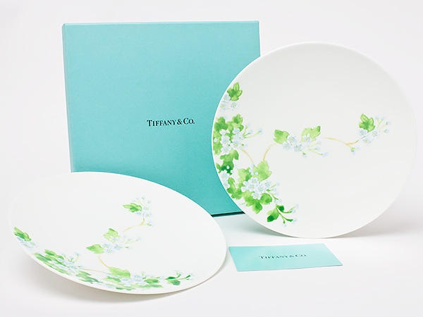 普段はもちろん、おもてなしにも使っていただけるティファニーのデザートプレートのペアセット。 大きさは直径9㎝、マチ2㎝です。 山査子(サンザシ)の花とあざやかな木の葉が爽やかなコレクションです。 結婚祝いのプレゼントに喜ばれています!