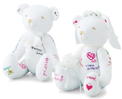 ブライダル・ウェディング・結婚式にぴったりの正装をしたキュートな寄せ書きぬいぐるみ。 ぬいぐるみ本体に直接書き込めるので、メッセージと可愛いが詰まった素敵な結婚祝いになること間違いなし!