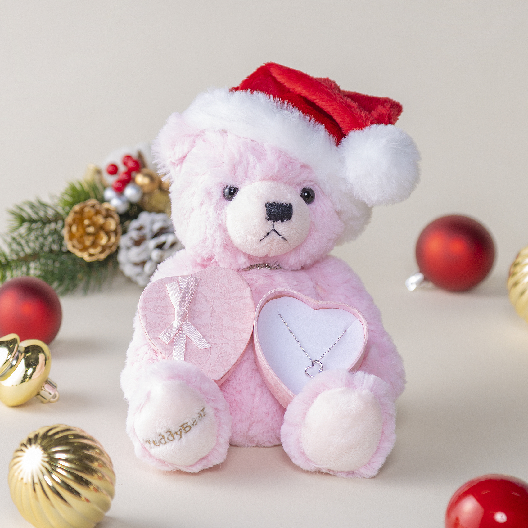 ふわふわで可愛いテディベアのぬいぐるみと誕生石のネックレスがセットになりました。