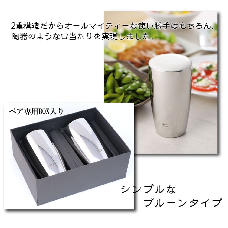 2つめのおすすめプレゼントは、2層構造断熱の高機能なタンブラーのペアセットです。 冷たいお飲み物や暖かいお飲み物の飲み頃を、長くキープしてくれる優れものです。 結婚祝いではガラス製のグラスを敬遠される方も多いですが、こちらは丈夫なステンレスなので問題ありません。 シンプルなデザインなので、さりげなくペアで使うことができ、また末永く使っていただくことができます。