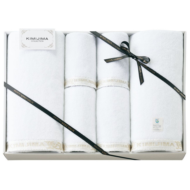 1つめのおすすめプレゼントは、皇室ご愛用「キミジマ」ブランドの高級今治タオルのギフトセットです。 タオルの名産地、愛媛県今治市で生産された、シンプルでありながらラグジュアリーなブランドタオルセットです。 高級ホテルのようなバスタイムを演出します。