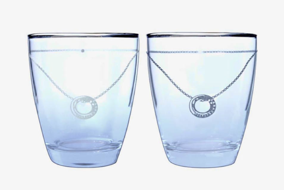 ジュエリーブランド【LARA Christie】の作ったペアグラスです。 グラスに描かれているネックレスは、【LARA Christie】の人気のネックレスです。 グラスの背面にはスワロフスキーがあしらわれています。 高級感のあるデザインは、20代前半の彼氏にたくさん使ってもらえますよ!