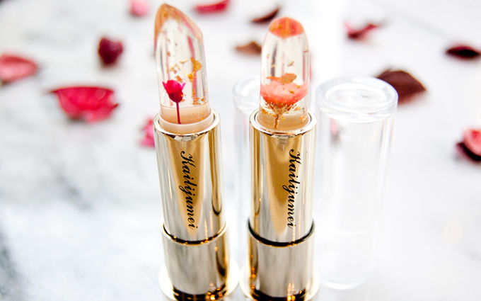 世界に1つだけのカラーを生み出してくれるティントリップ。 唇の体温や水分によって毎日色が変わる不思議なリップで、中に金粉とお花を閉じ込めたデザインはSNS映え間違いなし!